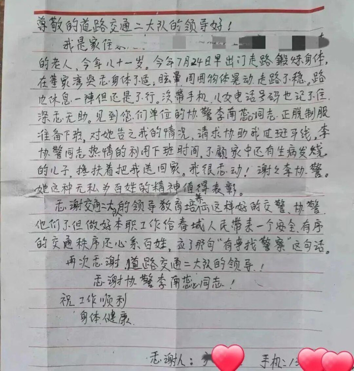 方奶奶艰难地走到华校岗位交警岗亭求助
